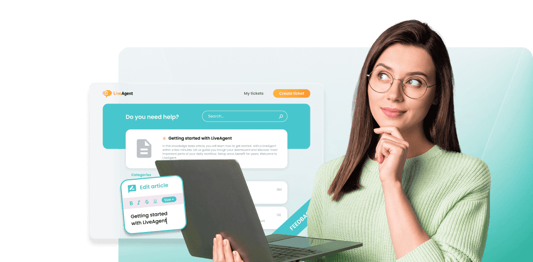 Twórz profesjonalne artykuły bazy wiedzy za pomocą edytora WYSIWYG LiveAgent, wyposażonego w łatwe w...