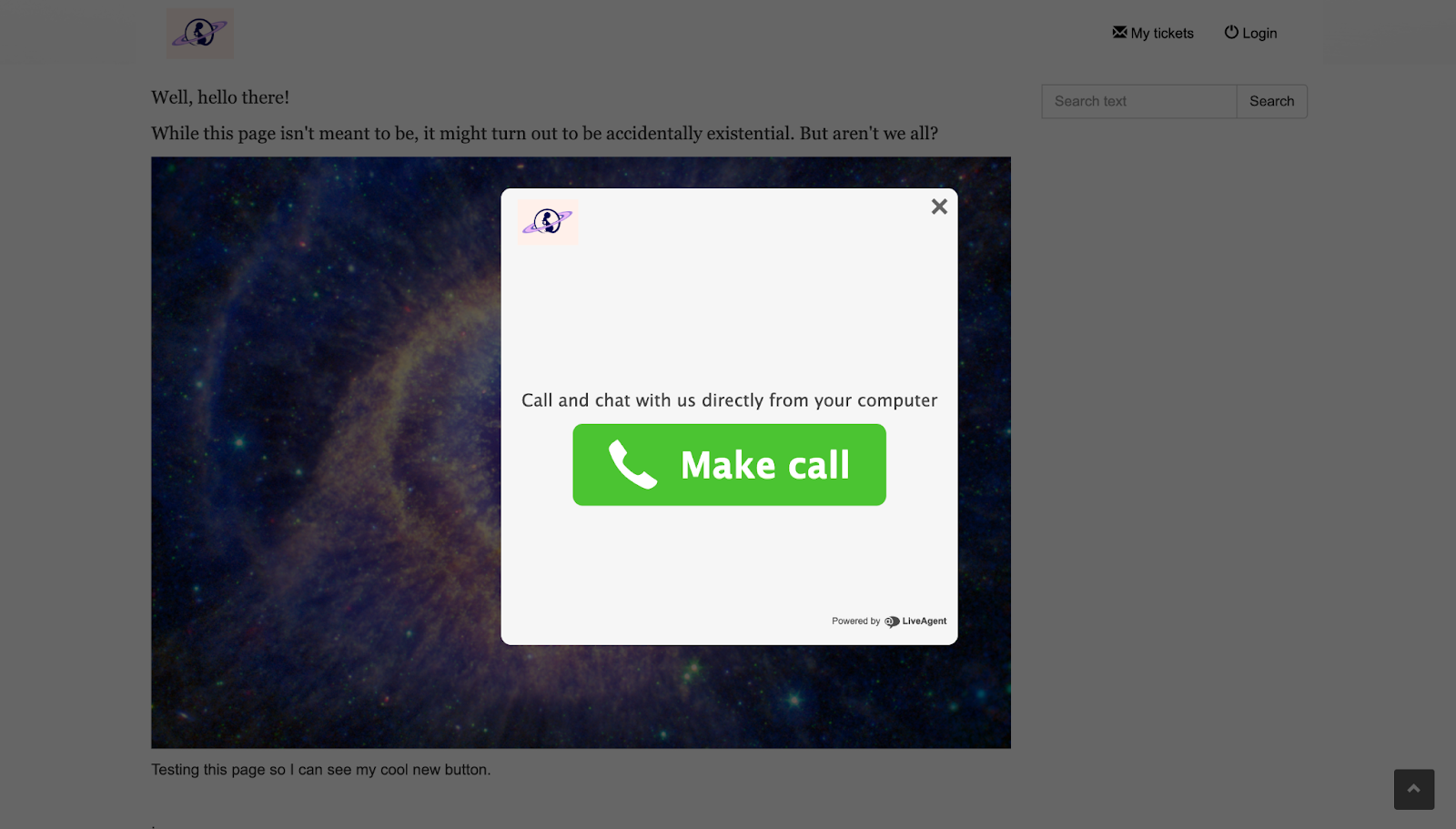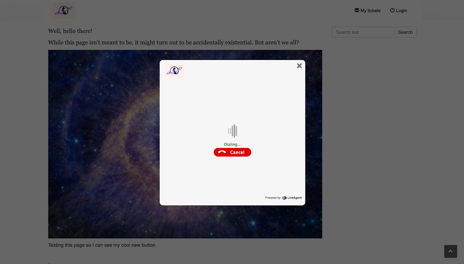 Czas na testy! Miałem otwarte dwie karty, z których pierwsza była pulpitem nawigacyjnym mojego agenta, a druga bazą wiedzy z przyciskiem „Zadzwoń do nas”. Wszystko było gotowe, więc postanowiłem wykonać obie czynności za pomocą tej samej przeglądarki i sprawdzić, czy wystąpią jakieś problemy.