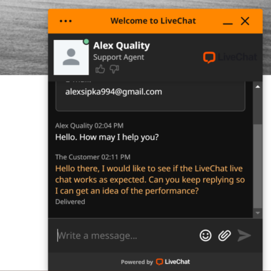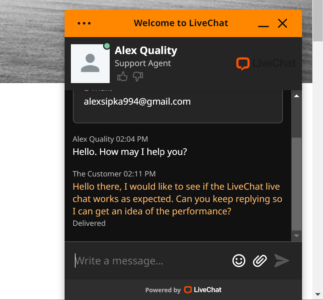 Ogólna wydajność widżetu czatu na żywo LiveChat jest świetna i nie mam zastrzeżeń pod żadnym względem. Nie napotkałam żadnych problemów z szybkością ani awarii. Widżet LiveChat jest solidnym wyborem, jeśli chodzi o niezawodność.